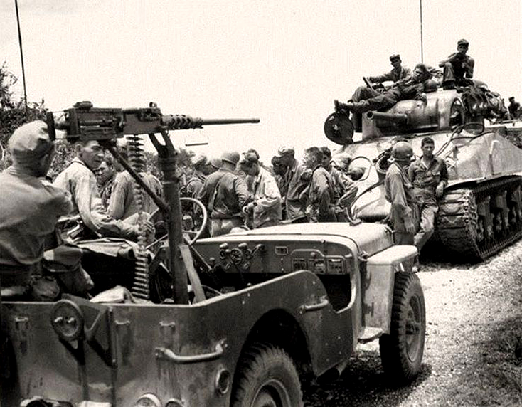 Early the next morning, June 26 (D+147), after swallowing their K-ration breakfasts the Angels continued marching for several hours until word came over the radio that the 37th Infantry Division was only a few miles away. The 37th’s CO was fifty-two-year-old General Robert S. Beightler, Sr. and his son, 1LT Robert S. Beightler, Jr., was serving with the 511th’s B Company, or "Gypsy White", as Communications Officer.