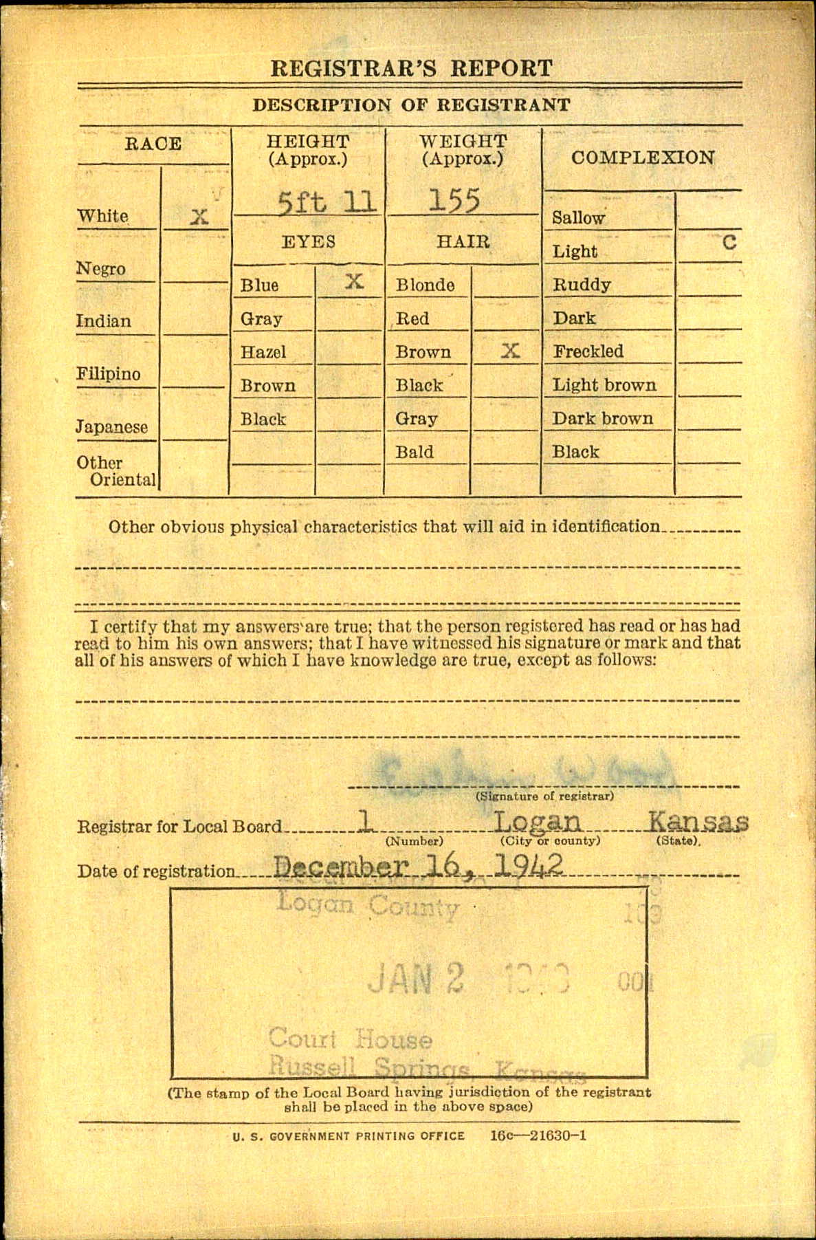 Citations: Purple Heart (OLC), Presidential Unit Citation, World War II Victory Medal, Philippine Presidential Unit Citation Badge, Philippine Liberation Medal with service star, the American Defense Medal, and the Asiatic-Pacific Campaign Medal with three Battle Stars and one Arrowhead