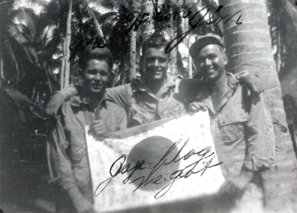 I heard a solder to my right yell: “I have a man killed over here!”. I never did pass out, nor did I have any pain from the hit for about 10 minutes. Al Harr, our Medic, got to me and gave me a shot of morphine, and took care of me like a professional. He laid me down behind a hole and asked for my rifle, but I told him: “I want to keep my rifle”. He didn’t press the matter. I was aware that there were killed and wounded soldiers all around the area. By this time, the Japs had counter attacked and were moving in on us. I found out later that 19 soldiers were wounded or killed in this battle.. It was a bad situation. Two of the wounded were our officers, Captain Cavanaugh and Lt. Carrico.