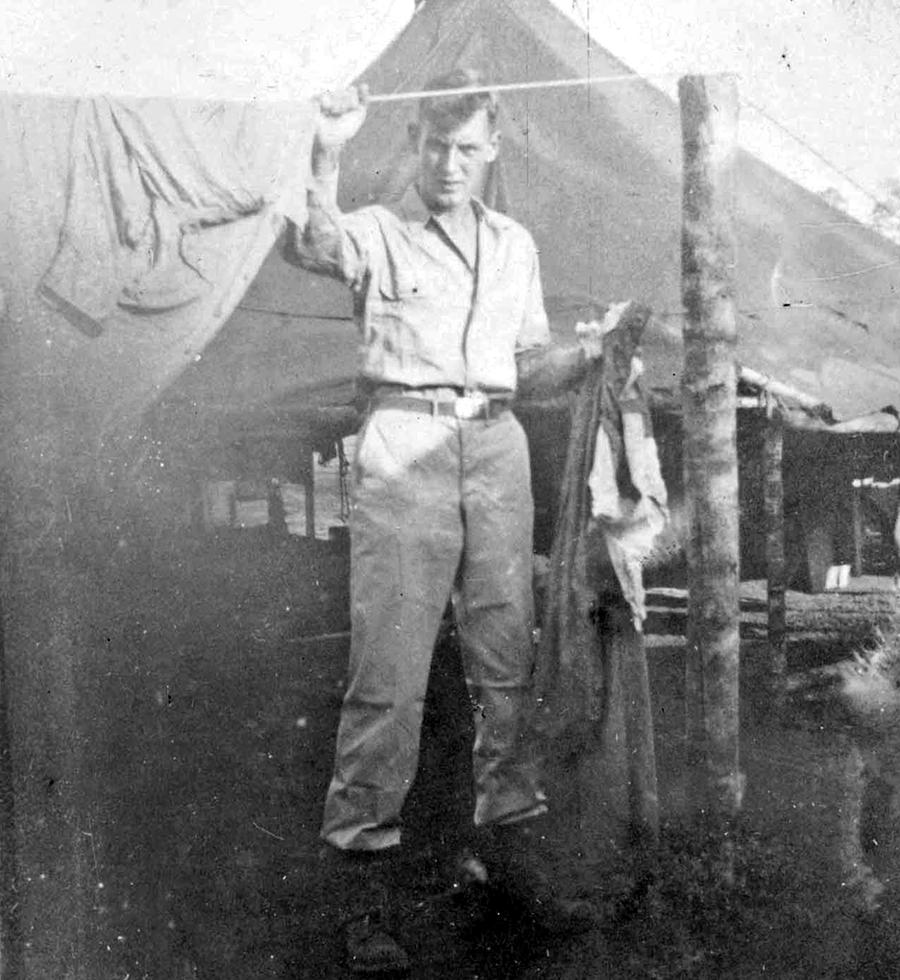 Oh, we had so many things happen you wonder….I remember one time we were on a mission on Leyte. We were stuck up on Starvation Hill, we called it, and we were not getting much to eat up there. We were socked in with fog and the pilots could not air drop to deliver food. They first tried with parachutes, but the parachutes would drift over and the Japs would get it. So they ended up flying over with L5’s and just dumping the boxes out. We all had to be on our toes, because the boxes came flying down just like bombs. I recall one time Col. Shipley was standing up on top of the hill saying “Chow, chow, chow” as the pilots came over and so the pilots came over and just gave the supplies a push out of the door. Boxes were flying all over, over trees and stumps, and Shipley was saying “Bring the boxes – pile them over here”. Red Metheney and I were standing there, and one landed near us and split open, spilling out a couple of cans which I grabbed and slid under my field jacket. But this is the kind of luck I had: You will never guess what the cans were. Gun oil! I said, “Ain’t that it!”. Ah, that was really awful luck for me.