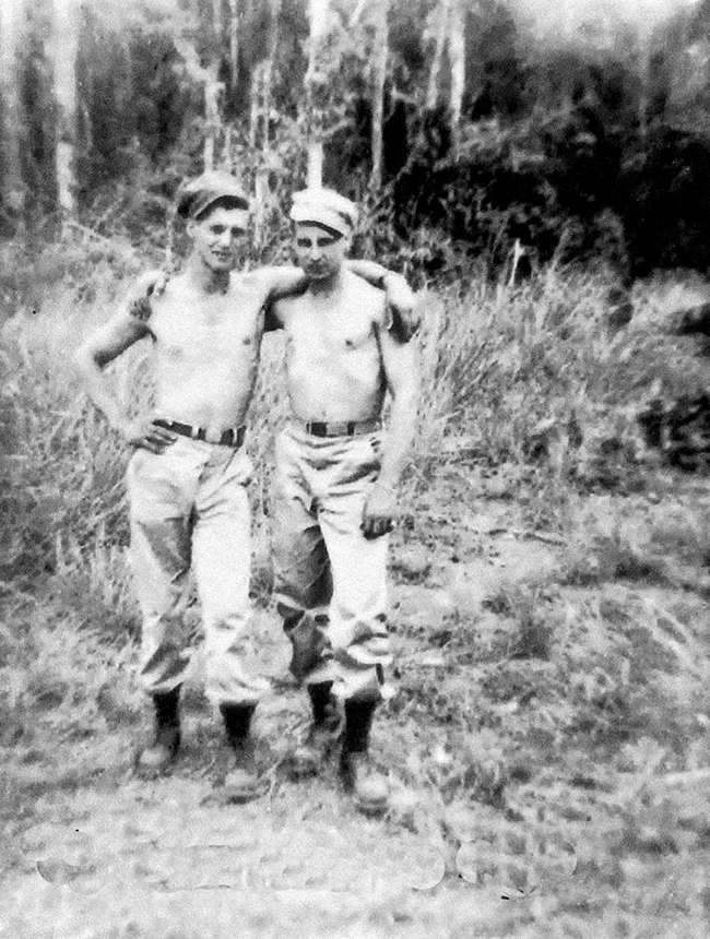 Photo at right: Pfc. Donald J. Hyatt (L) and Pfc. Chauncey S. Poole on New Guinea, 1944. Photo by Pfc. Norman "Red" Zadoorian